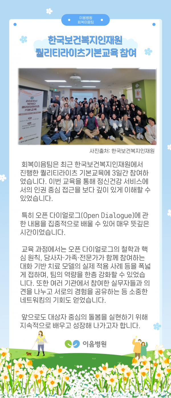 [회복이음팀] 한국보건복지인재원 퀄리티라이츠기본교육 참여
